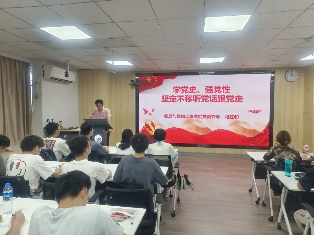 党委书记杨红和在科技楼南809为学院第二十二期入党积极分子培训班全体学员讲授《学党史、强党性,坚定不移听党话跟党走》专题党课。