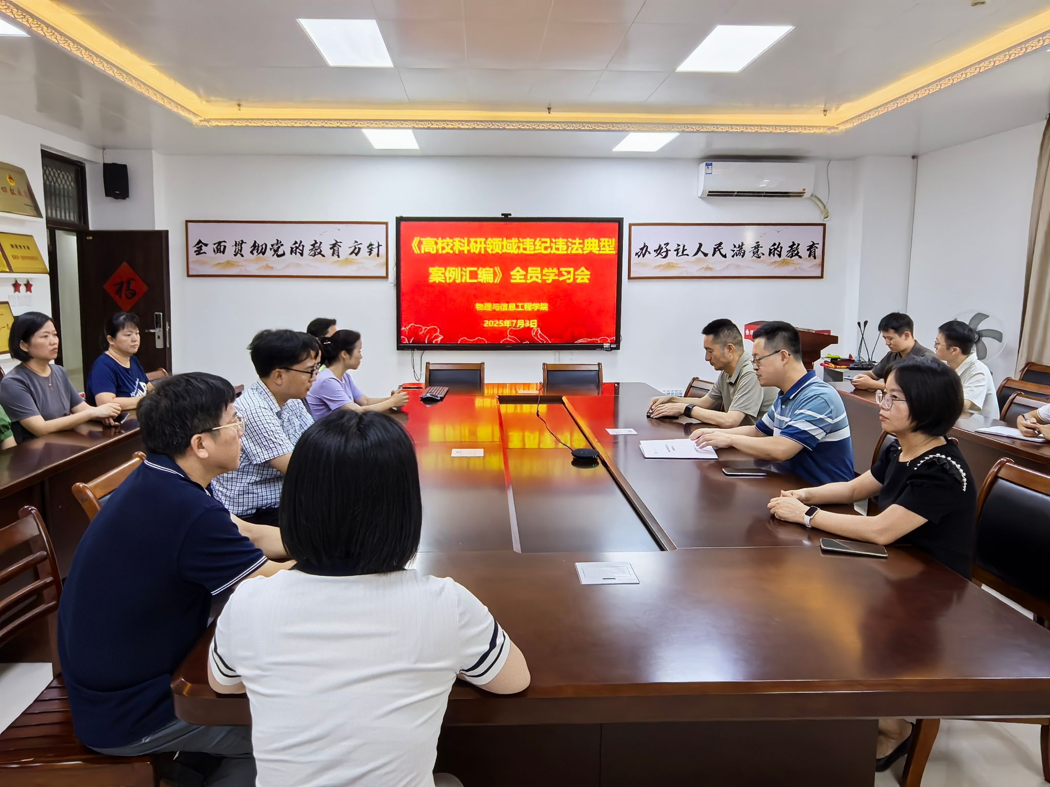 在科北907会议室开展《高校科研领域违纪违法典型案例汇编》学习活动。学院党政领导、科级干部、专任教师等参会,会议由学院院长陈志翔主持,