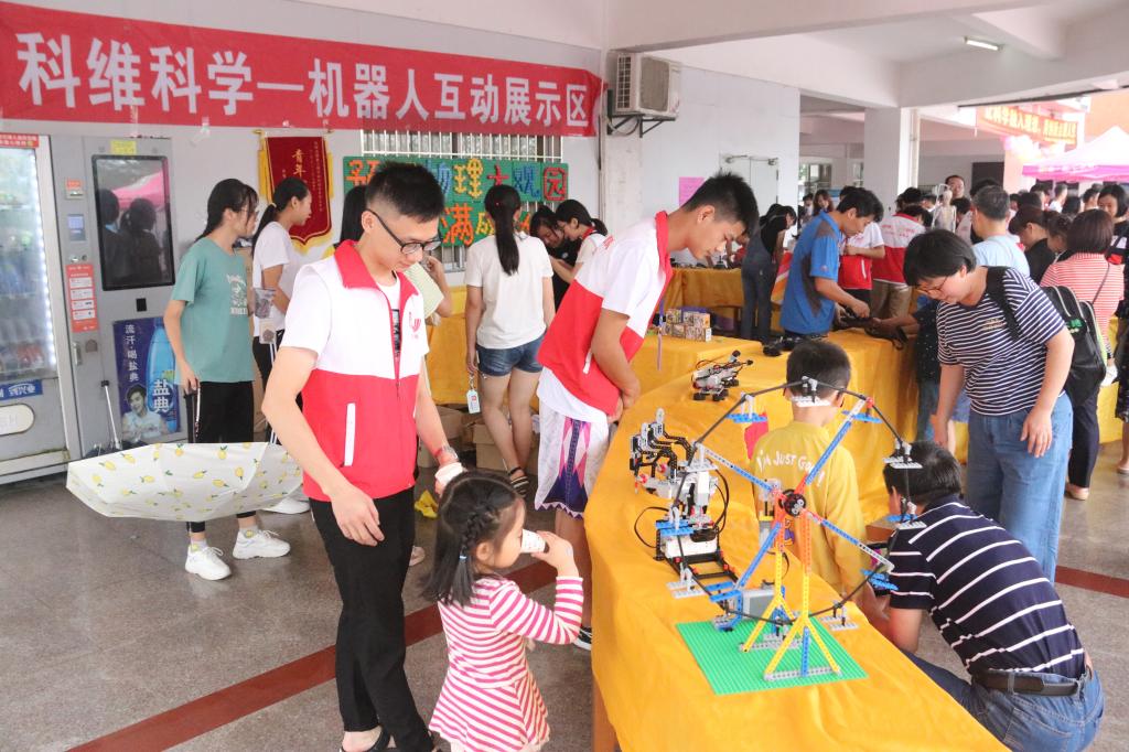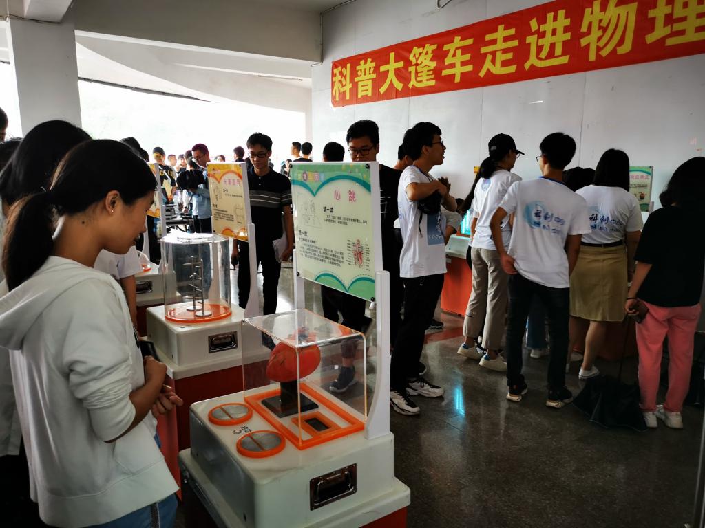 此次物理大观园设有八个模块:一是电子设计作品展区,包括校电子设计大赛、省合泰杯竞赛一等奖作品等;二是物理教具展区,出自未来人民教师们的作品新颖有趣,各种各样的新型教具引得大家观看讨论;三是智能小车和无人机展区,地上小车智能循迹穿梭,空中无人机翩然来回;四是画伞展区,色彩斑斓、风格多样的画伞,是物信人温柔的一面;五是板块展区,文图结合,精心设计的展板详细介绍了大观园活动内容、还有禁毒知识、反邪教海报,时时向大家科普宣传;六是科普大篷车展区,简单有趣的游戏机是游园必体验项目;七是科维游戏互动区,利用乐高EV3拼装机器人,开启游戏大闯关;八是义务维修区,彰显了日本无码