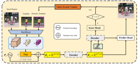4. 动态模板的选择性生成机制:利用一个简单的分数头对解码器输出加以判定,一旦分数低于阈值,则不对动态模板做更新操作,以此避免因遮挡引起的模板污染问题。