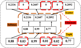 3. 无效信息的选择性消除:我们利用SE模块对注意力矩阵分数加以选择,对于低于阈值的注意力分数采取直接清零的策略,以此消除干扰物对目标跟踪的负面影响,进一步提高了跟踪网络的判别能力;