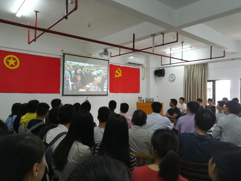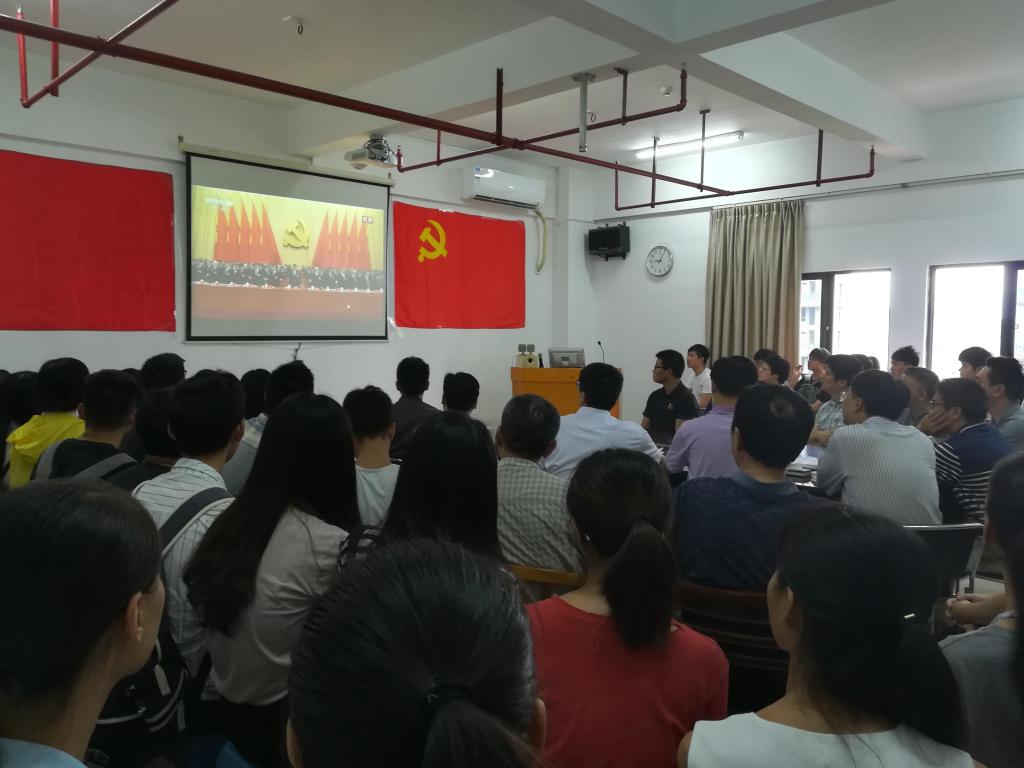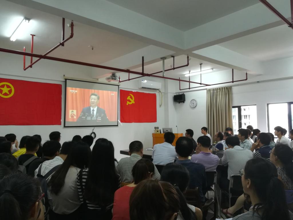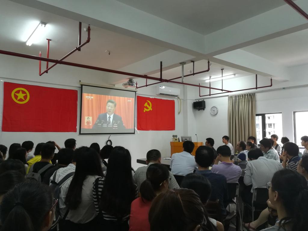 组织了老师和同学一起在科技楼907会议室观看十九大的开幕盛典。