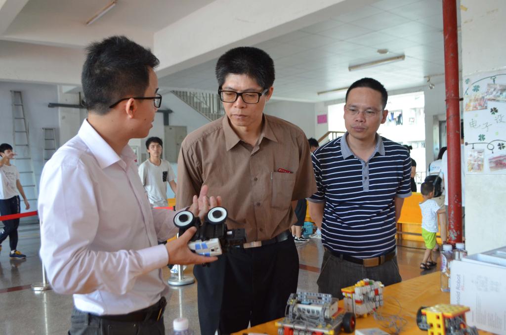 党委书记张跃聪宣布游园活动正式开始。游园活动设置有七个活动区:一是电子作品展区,其中包括了校电子设计大赛,合泰杯,创客空间等优秀作品,二是创意作品展区,三是机器人展区,在这里你可以看见龙文区科普馆和厦门羽星科技有限公司提供展出的机器人,四是漳州市科技馆互动仪器展区,五是两学一做知识展区,阅读党员好书,学习党的知识,六是义务维修区,包括家电维修和电脑维修,竭诚为您服务,七是趣味游戏互动区。每一个活动区域都有很多学生驻足停留,沉浸在良好的活动氛围中。其中,电子展区和创意作品展区的优秀作品引发了不绝的称赞。“智能冲奶机”在奶粉冲泡上既细致又人性化的设计让观众眼前一亮;本届日本无码