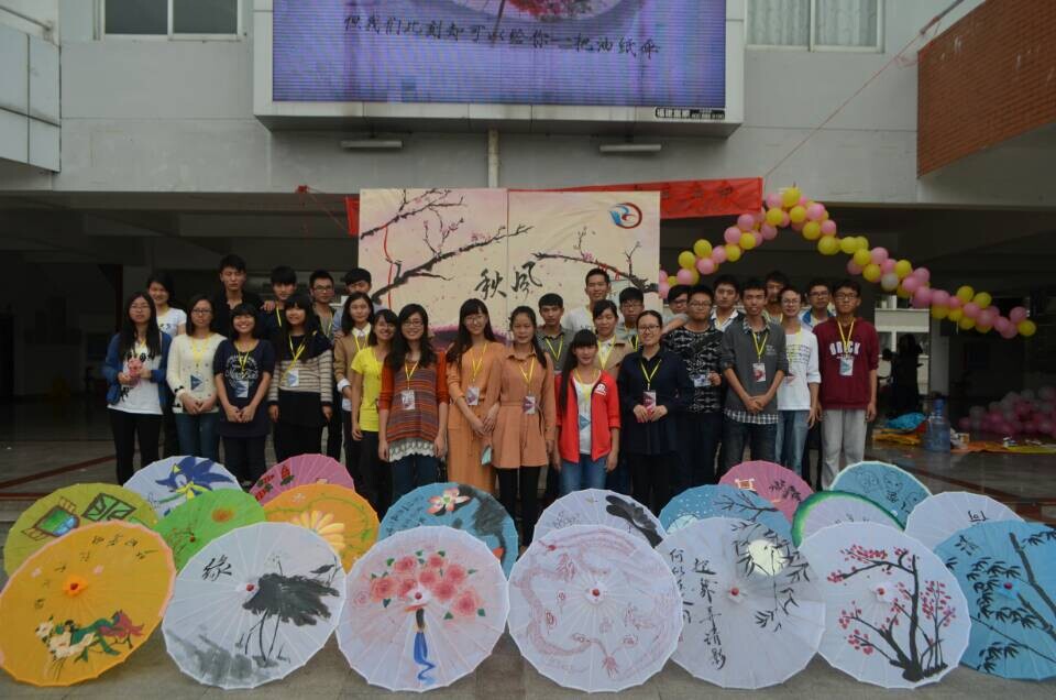 浓浓的秋意中,30日,物信学院“秋风迎画伞”伞面设计活动如期举行,在达理活动中心,20把油纸伞等待他们主人的精描细绘。两个小时后,绘画作品陆续完成,作品有别具特色中国风的水墨画,也有富有小清新的卡通人物画。其中“梦回烟啭,祝尽呈烟”将美妙的情感送给远方的人;“少女花海伞”玫瑰花开,少女曼妙动人;“我愿陪你从“青葱”到白头,将执子之手,与子偕老的爱情故事表达的淋漓尽致;“龙凤呈祥”中龙凤双飞,吉祥美好;“起舞弄清影,何似在人间”夜色月光明亮,清幽意境将追寻闲适的情怀呈现出来;“随风唱晚秋”将浓浓的秋意以梅花盛开,女子赏花,意蕴无长;别具特色的油纸伞,整齐的陈列在一排排走道上,引来了许多师生的围观拍照,甚至当场要出价购买。多彩绚丽的油纸伞最重要的工作不只是吸引目光,他们还有更重要的任务需要完成,随后他们将在学校的各个角落甚至淘宝网上驻足出现,最后成功售出,学院会将这些最值身价的油伞换来的收益一并捐给福利院的孩子们,完成最后的公益使命。
