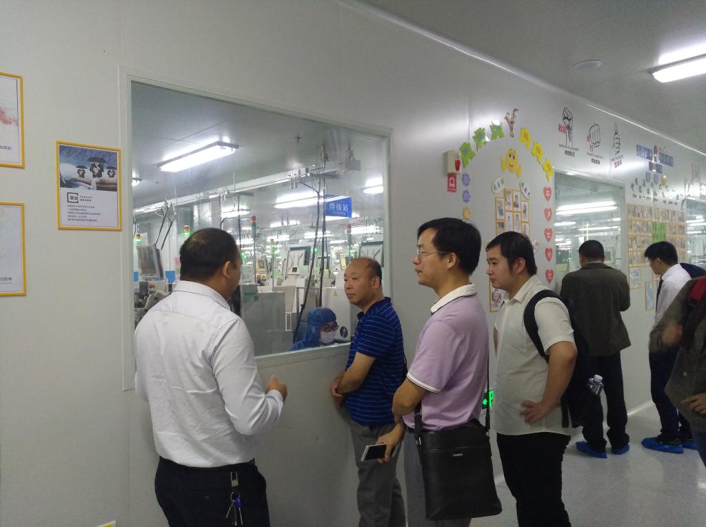 周小方院长一行对产业园区晶安光电、天电光电、信达光电等企业进行了实地走访,还在企业负责人陪同下到生产车间参观相关生产流程、交流技术要领,并与企业就学生实习就业、人才培养、产学研合作等事宜进行了深入交流,并期望通过此次考察调研能尽快搭建校企合作的平台。