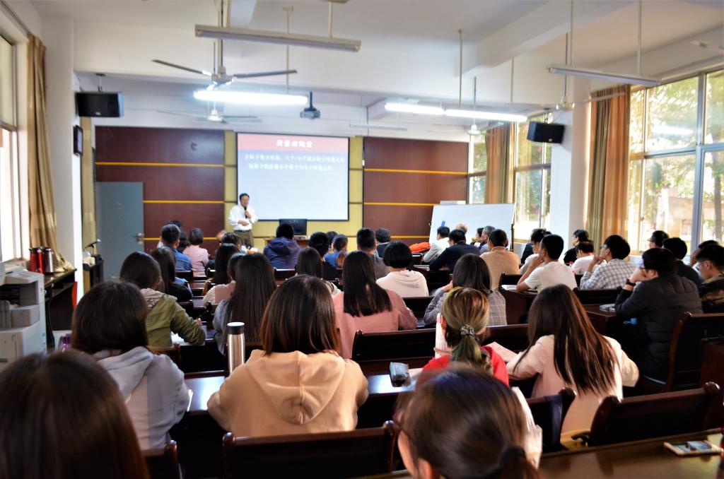 ,在励志楼114室开设题为《标准模型中基本粒子的质量问题》的讲座。物信学院教师、研究生、本科生聆听了本次讲座,会场座无虚席。