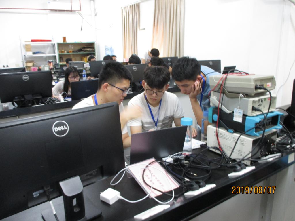 取得了优异的成绩。为了更好迎接比赛,物信学院高度重视,从3月份开始,依托校级电子设计竞赛选拔参赛学生,并积极组织开展赛前培训活动。根据国赛时间、任务、要求,组织指导老师和参赛学生投入到高强度的集训中,主动放弃暑假休息时间,全力以赴,认真做好各项筹备工作,力争再创佳绩。目前,竞赛正在如火如荼的进行之中,学生们将需要持续奋斗四天三夜,通过三人一组的团队协作,各队需独立完成竞赛选题、赛题分析、方案设计、硬件制作、软件编写及撰写竞赛论文等工作。