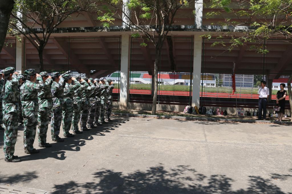 军训场上,各参训方队步伐整齐,口号嘹亮,学院领导一行观摩了训练实况,了解后勤保障具体安排和突发事件的应急处理措施,与承训教官、参训同学亲切交流,高度赞扬参训学生刻苦训练展现出的精神风貌,对教官的认真负责、严格训练以及带训辅导员的辛勤付出表示肯定和慰问。