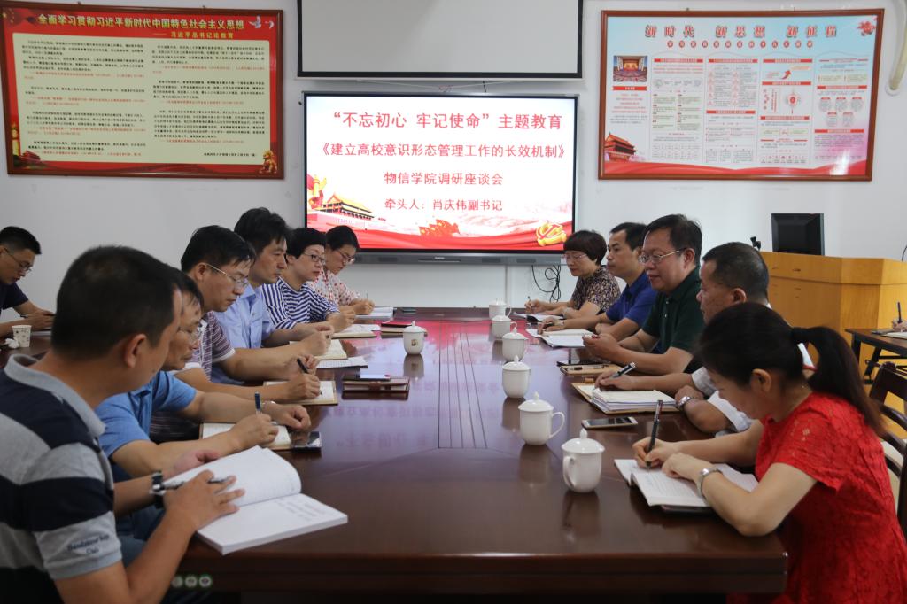 就《建立高校意识形态管理工作的长效机制》开展调研指导。物信学院党政领导班子成员及相关人员出席调研座谈会。