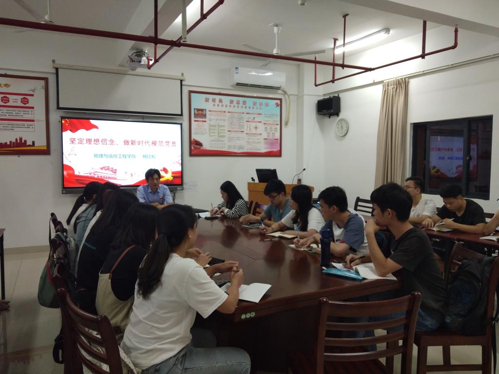 持续深入开展“不忘初心,牢记使命”主题教育,10月17日,学院党委主持工作副书记杨红和给物信学院学生第五党支部全体党员上了一堂别开生面的“坚定理想信念,做新时代模范党员”的主题教育专题党课。