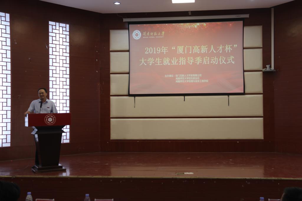 与校招生就业处、厦门高新人才开发有限公司针对毕业生切实需求,共同合作举办了此次活动。厦门高新人才开发有限公司总经理赖洪洪,校招就处处长林贵东,物信学院党委主持工作副书记杨红和,及相关负责老师共同出席了启动仪式。