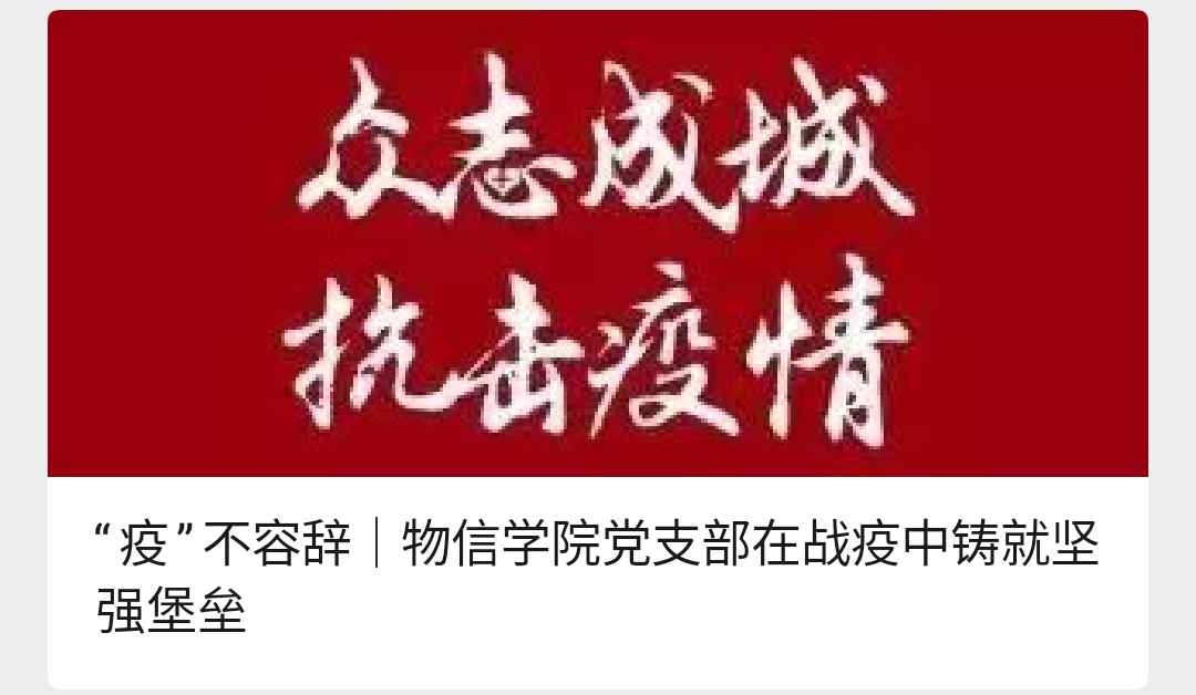 疫情就是命令,防控就是责任。习近平总书记在勉励北京大学援鄂医疗队全体“90后”党员的回信中指出,青年一代有理想、有本领、有担当,国家就有前途,民族就有希望。党旗所向就是团旗所向,为进一步发扬“党有号召、团有行动”的优良传统,物信学院团委积极响应号召,结合学院特点开展抗击疫情线上主题团日活动,充分展现了物信学子们的责任与担当。