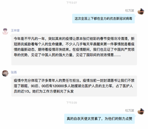各年级团支部运用线上平台,组织大家了解疫情最新情况,科普疫情防控方法,认真开展疫情防控专题学习活动。旨在倡导共青团员在疫情防控中肩负起新时代青年的责任与使命,坚定物信学子在疫情面前战之必胜的信心与决心。