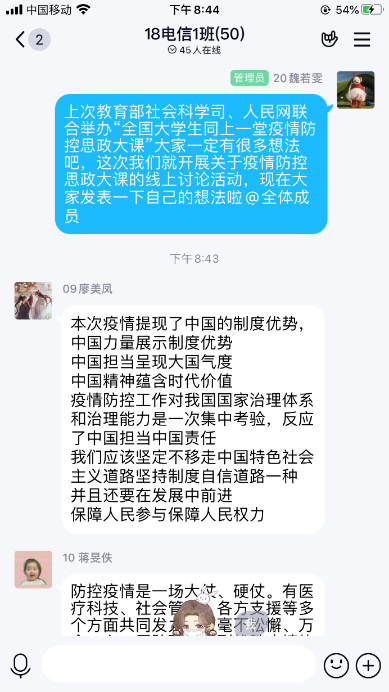 18电信1、19电气1、17物本等26个团支部组织开展线上疫情防控主题班会,各团支部紧跟通知进行“青年大学习”活动。