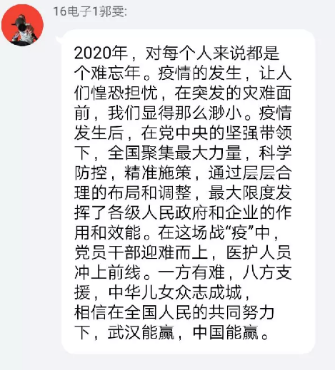 16电子2团支部拍摄加油照片,传递战“疫”正能量
