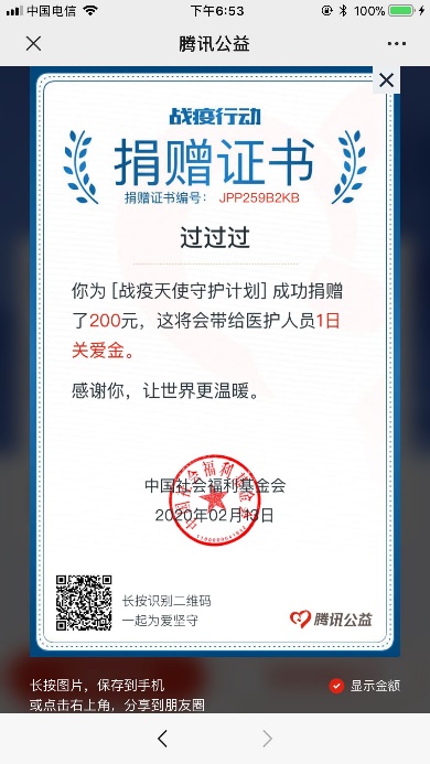 学生自发进行捐款捐物,为疫情防控贡献微薄力量,传递温暖,充分展现了当代大学生的家国情怀和责任担当。