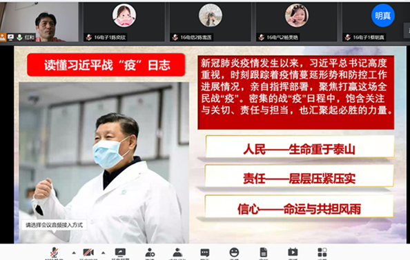 杨书记以当前国家疫情防控工作为切入点,带领同学们学习习近平总书记战“疫”日记,深刻领会习近平总书记为国为民的情怀,凸显责任担当和战疫必胜信心。生动阐述疫情防控离不开共产党领导,离不开广大人民群众的支持和配合,离不开中国特色社会主义制度,彰显国家制度在疫情防控中的优势。