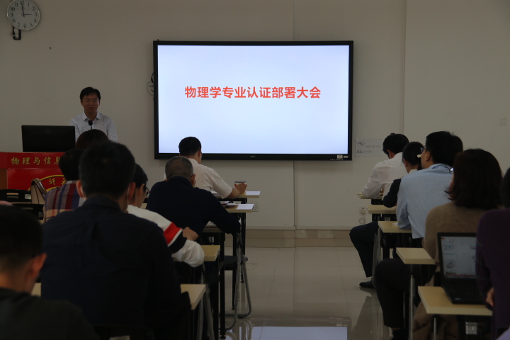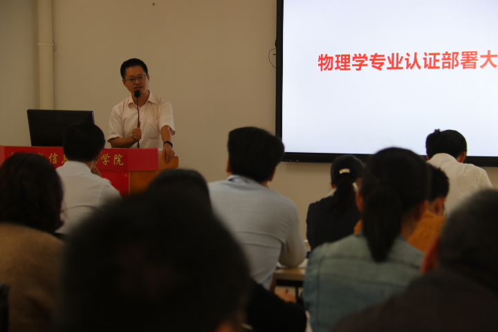 在科技楼召开物理学师范专业认证工作部署会。物信学院党政领导、系主任、办公室、团委、教务科相关负责人和物理系全体教师出席了部署会。会议由张华林副院长主持。