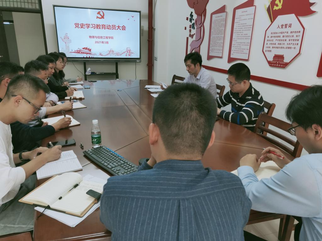 3月18日,物信学院党委在科技楼南915召开党史学习教育动员大会,深入学习贯彻习近平总书记在党史学习教育动员大会上的重要讲话精神,贯彻落实校党委党史学习教育动员大会上的决策部署。学院党委委员、各党支部书记出席会议。
