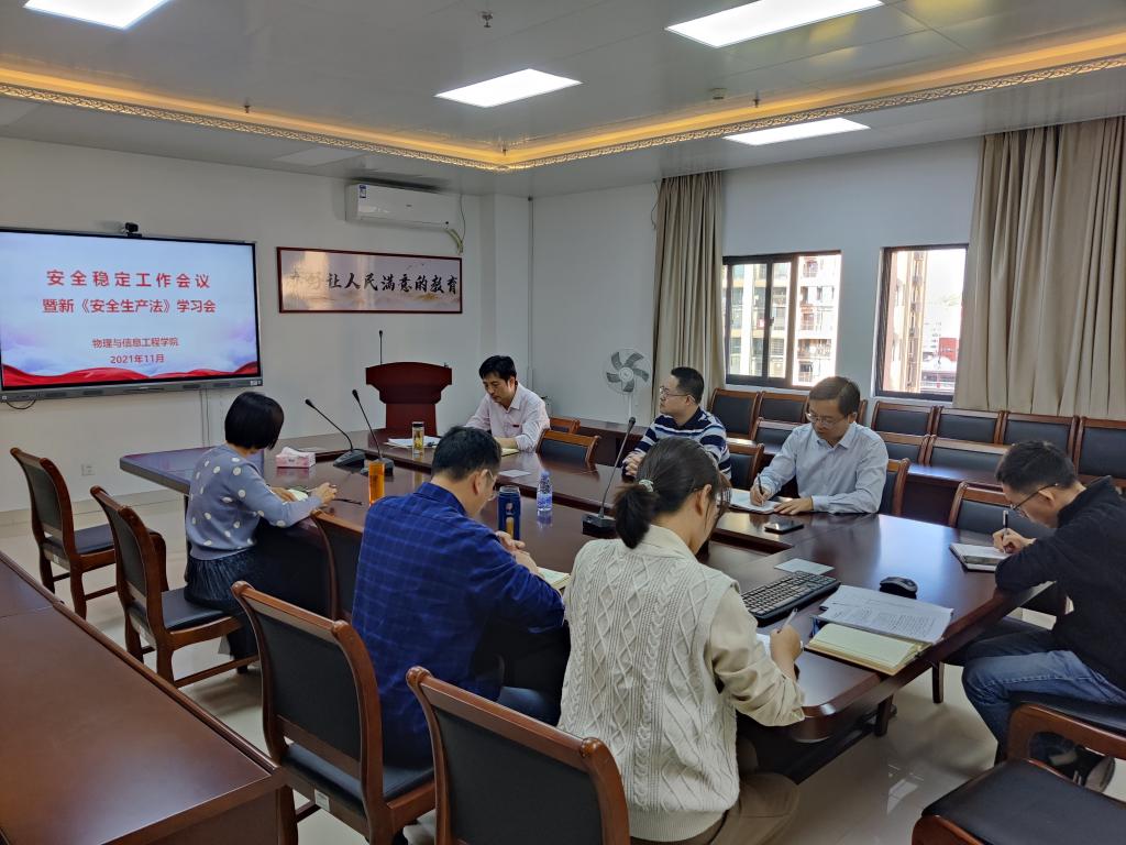 在科技楼北907会议室召开安全稳定工作会议暨新《安全生产法》学习会,学院党政领导、相关行政人员出席会议。