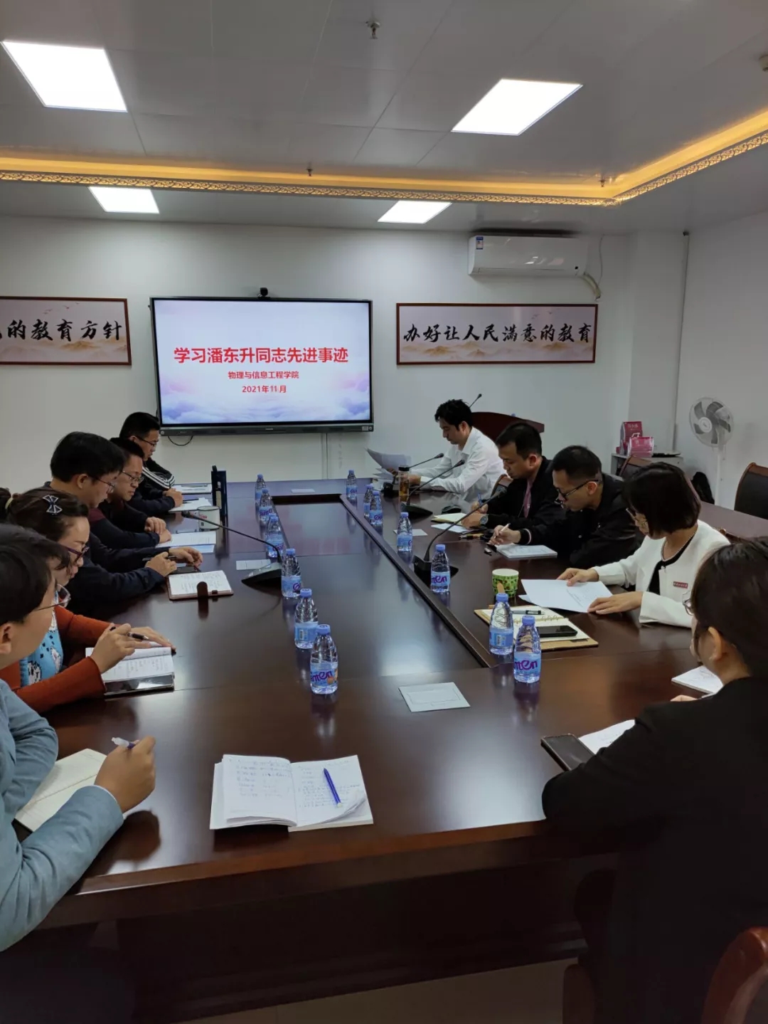 党委在科技楼北907会议室召开党委理论学习中心组学习会,集中学习“时代楷模”潘东升同志先进事迹,学院党政领导、各党支部书记参加学习会,会议由学院党委书记杨红和主持。
