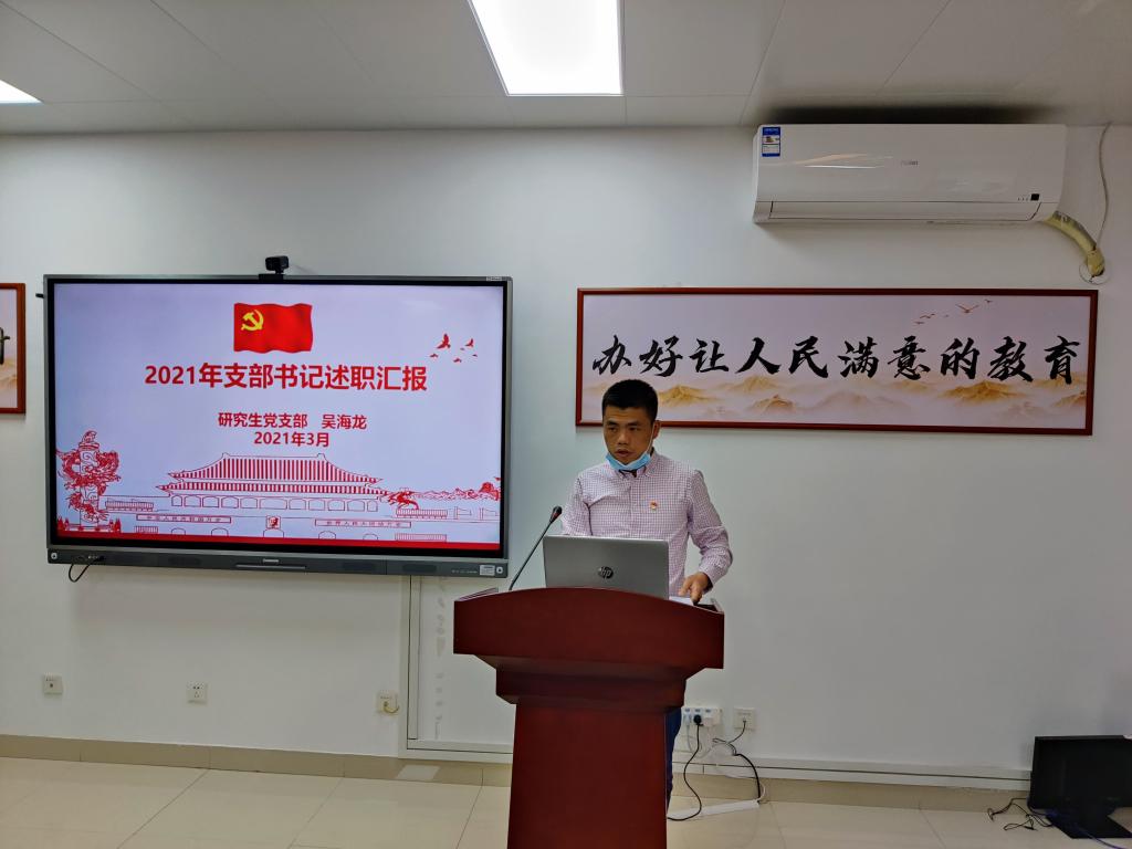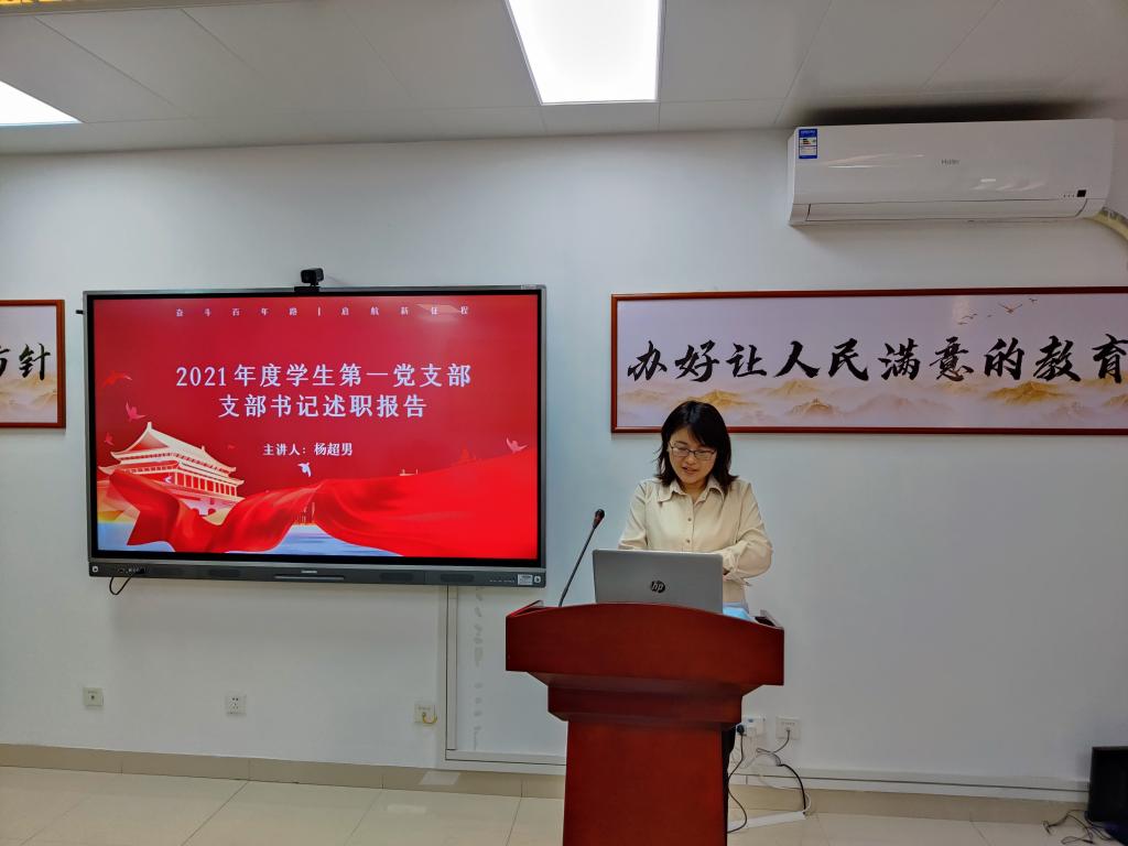 学院5个教工党支部和6个学生党支部书记依次作述职发言。各党支部书记分别围绕2021年度党建工作情况及履职尽责情况进行总结回顾,汇报了一年来支部工作的基本情况及特色工作亮点,分析存在问题及主要原因,提出了下一步工作思路和方法。在听取支部书记述职汇报后,院党委书记杨红和同志对各位支部书记工作表示肯定并一一进行了点评。
