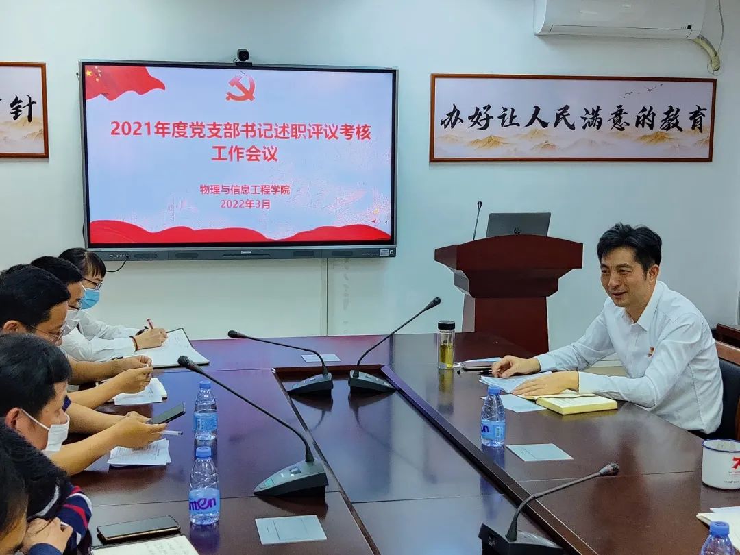 在科技楼北907召开2021年度党支部书记述职评议考核会。学院领导班子、党委委员、系主任、各党支部书记参加会议。
