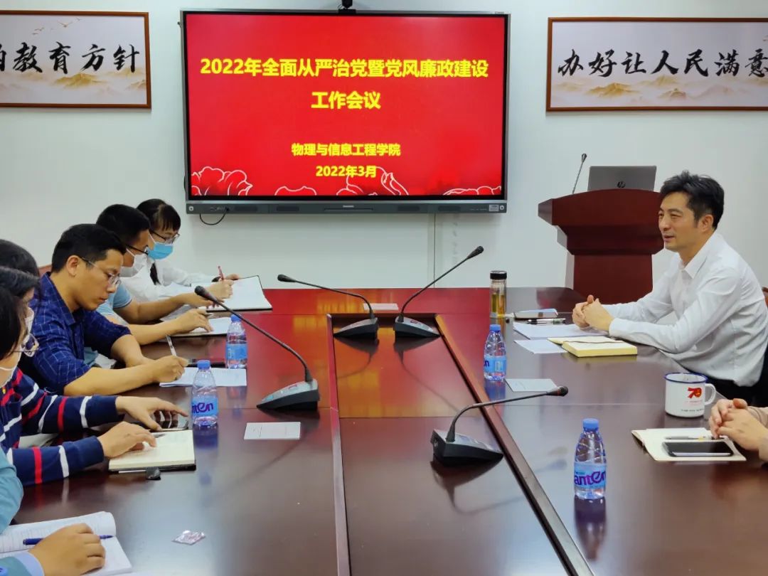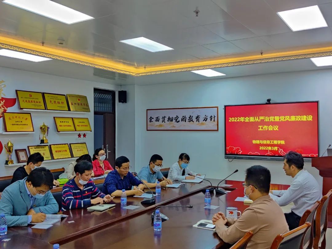 在科技楼北907召开2022年全面从严治党暨党风廉政建设工作会议,学院领导班子、党委委员、系主任、各党支部书记参加会议。