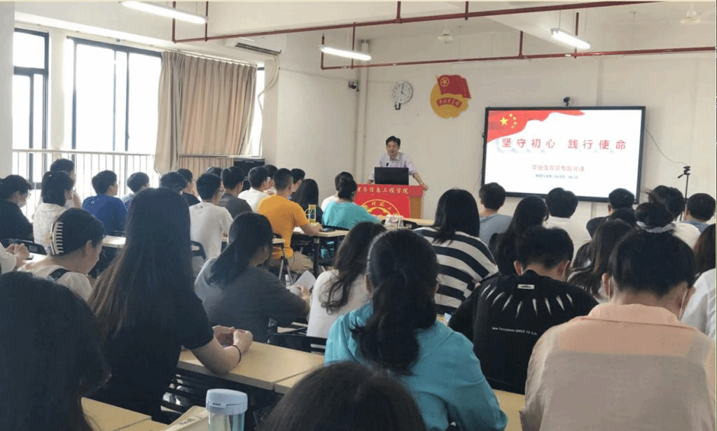 党委书记杨红和以“坚守初心,践行使命”为题,在科技楼809为学院全体毕业生党员上了一堂精彩生动的党课。
