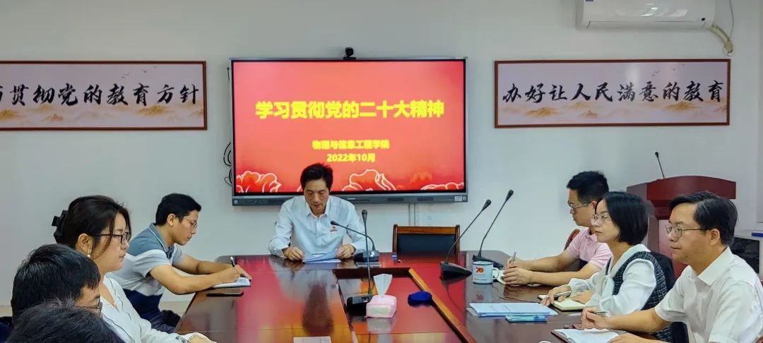 会议强调,我们要结合学院实际,在学懂弄通做实上下功夫。一是要提高政治站位,深化思想认识,全面深入学习领会党的二十大精神,把思想和行动统一到党的二十大精神上来。二是要原原本本反复学,原汁原味地理解领会党的二十大报告原文、大会形成的各项决议以及习近平总书记有关重要讲话。三是要系统深入学,领导干部要带头学习,要层层跟进抓好传达学习,开展多形式、分层次、全覆盖的学习培训,确保党的二十大精神传达到每一个党支部、每一名师生。四是要融会贯通学,把学习宣传贯彻党的二十大精神与学习习近平总书记关于教育、科技创新、人才工作等重要论述,与学习贯彻习近平总书记来闽考察重要讲话重要指示贯通起来。五是要结合实际学,高质高效地统筹好当前的疫情防控和学院事业发展,认真研究贯彻落实关于人才培养、学科建设、科学研究、师资队伍建设等工作,不折不扣抓好贯彻落实,不断提高教育教学质量,持续加强科学研究和科技成果转化,切实把学习贯彻党的二十大精神转化为干好本职工作的具体行动。