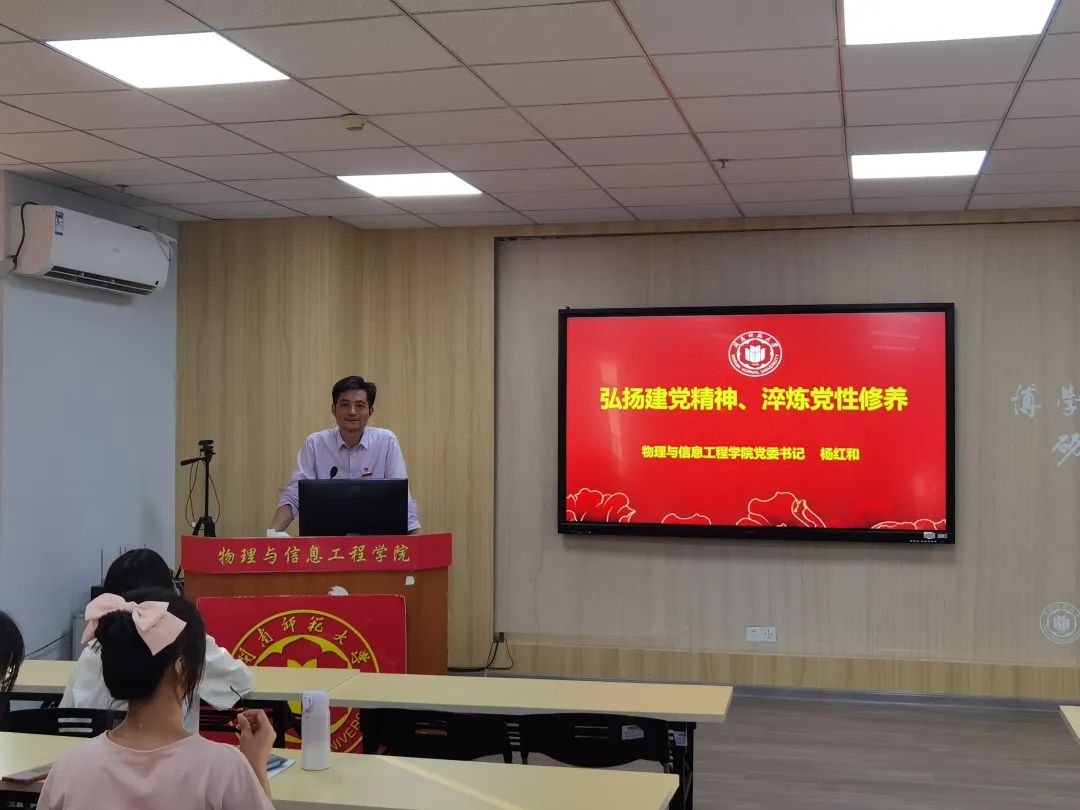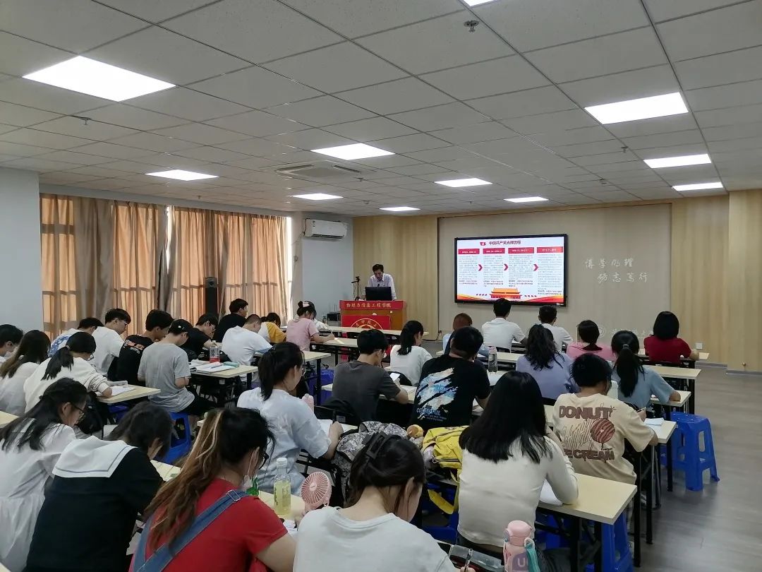 党委书记杨红和在科技楼南809为学院第二十一期入党积极分子培训班全体学员讲授《弘扬建党精神、淬炼党性修养》专题党课。
