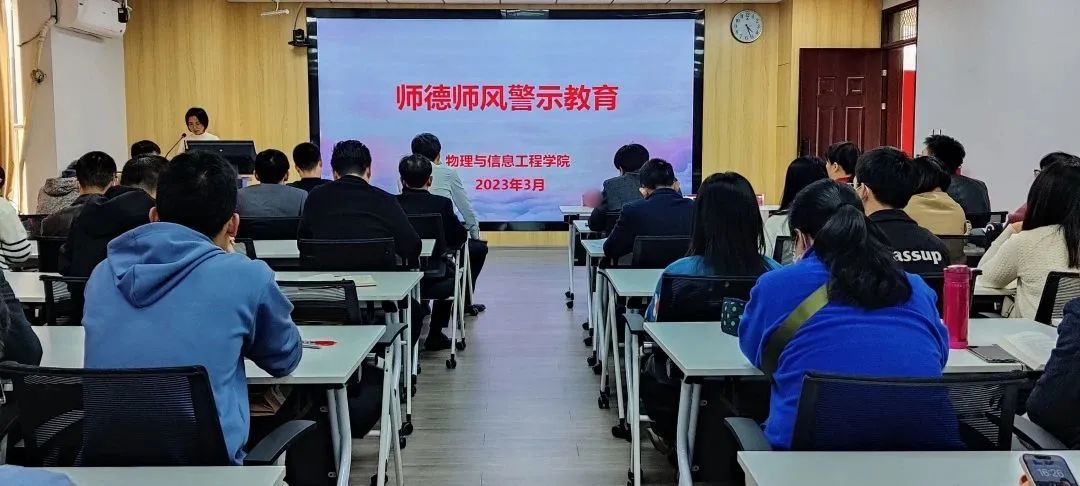 在科技楼南809召开师德师风警示教育会议,学院全体教职工参加会议。