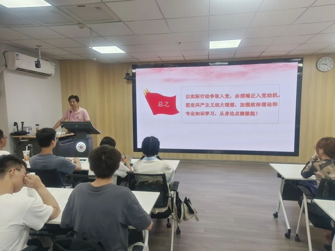 党委书记杨红和在科技楼南809为学院第二十二期入党积极分子培训班全体学员讲授《学党史、强党性,坚定不移听党话跟党走》专题党课。