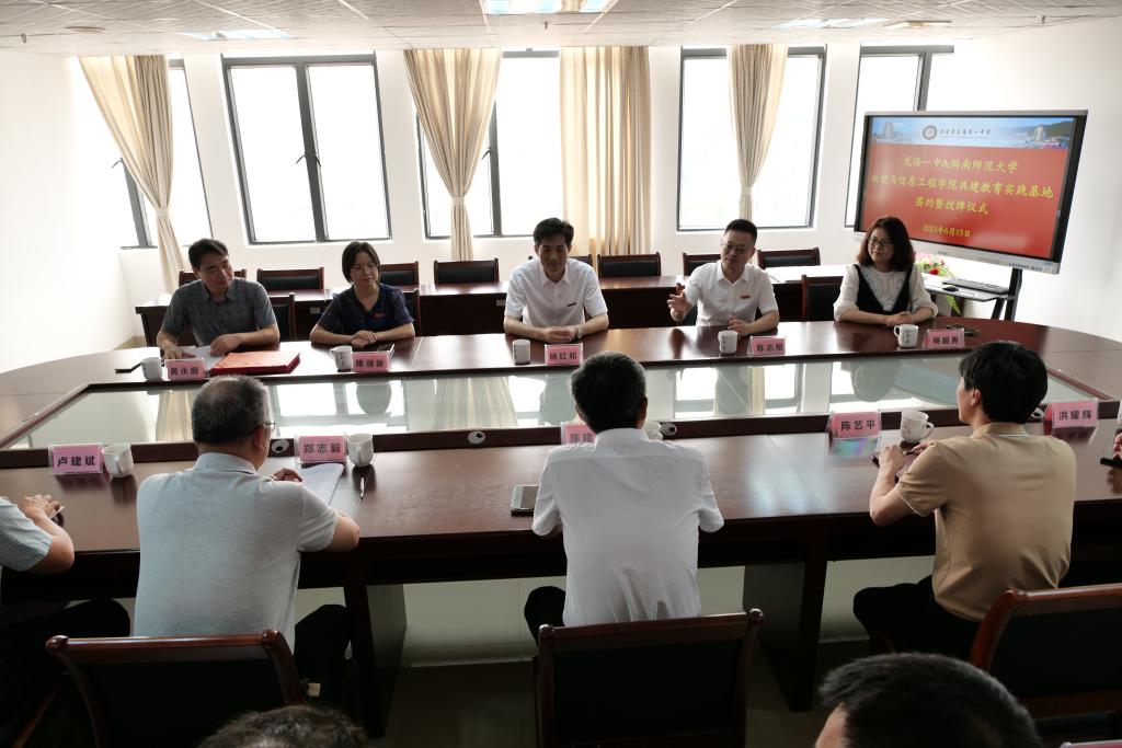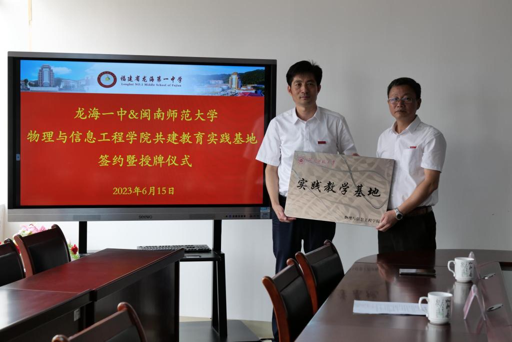 党委书记杨红和、院长陈志翔、副书记陈丽新、团委书记杨超男、物理学(师范)专业实践负责人黄永顺副教授一行到漳州市龙海一中举行物理学(师范)专业实践教学基地签约授牌仪式暨校外实习指导老师聘任会。漳州市龙海一中校长陈建明及学校领导班子、相关处室、全体受聘指导老师出席签约仪式。