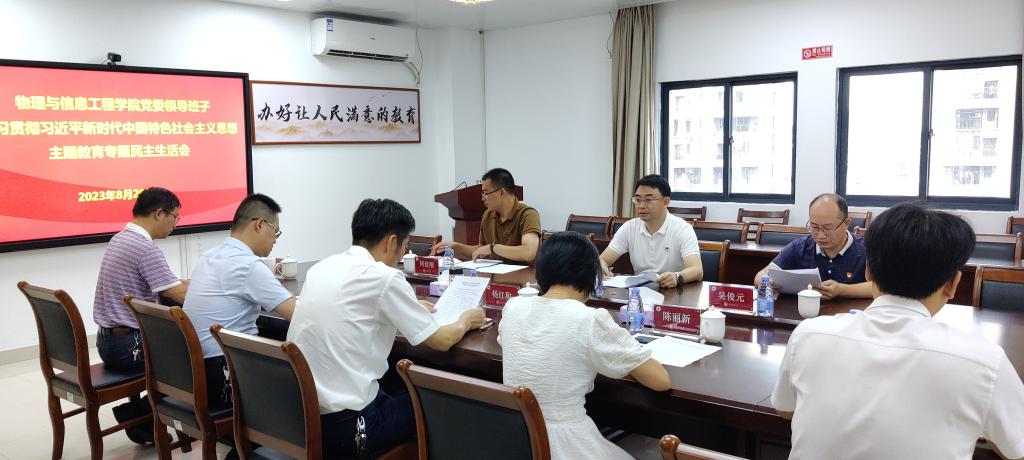 校党委常委、纪委书记戴福康对此次专题民主生活会作出点评,他表示物信学院专题民主生活会会前准备充分,剖析较为深刻,批评比较客观,对于增进班子团结,改进工作很有帮助,对增强班子的凝聚力,战斗力、向心力很有意义,此次民主生活会务实深刻,达到预期效果。他强调,下一步学院班子成员要把更多的精力放在整改措施上,把此次民主生活会的成果转化应用到工作中,凝心聚力,抓好学院的各项发展工作。一是要持续加强理论学习。理论学习只有进行时,没有完成时。我们始终要把学思想,特别是学习习近平新时代中国特色社会主义思想作为首要政治任务,进一步坚定理想信念,提高政治判断力、政治领悟力、政治执行力。思政课要引领立德树人,新思想要进教材进头脑进课堂。我们要把政治引领融入我们的教育教学当中。二是要坚决抓好问题整改。问题整改是民主生活会的后半篇文章,班子成员要及时把会前梳理的问题、谈心谈话提到的意见建议以及调研成果转化清单结合起来,制定完善整改方案,细化整改措施,明确整改时限和责任,统筹做好整改工作。班子成员要细化个人整改措施,认真抓好问题整改,要坚持“当下改”与“长久立”相结合,不断完善各项制度机制,巩固深化主题教育成果。三是要坚持走好群众路线。开展学习贯彻习近平新时代中国特色社会主义思想主题教育一个重要的目的是切实解决好广大师生群众急难愁盼问题,学院领导班子要坚持民有所呼、我有所应,以看得见的变化回应师生关切。我们要把民主生活会的成效体现到校院中心工作上,体现到学院的人才培养、科学研究、社会服务、文化传承和国际交流的各项工作上,补齐我们短板。要坚持聚焦学校建设高水平师范大学的奋斗目标,聚焦学院发展的难点,痛点,堵点,聚集学院师生急难愁盼问题,不断提升高质量发展本领,服务群众的本领,共同推动我们学院发展上一个新的台阶。