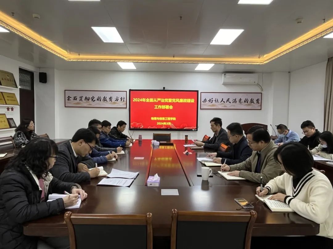 在科技楼北907召开2024年全面从严治党暨党风廉政建设工作部署会,学院党政领导班子成员、党委委员、科级干部、各党支部书记参加会议。学院党委书记杨红和主持并作工作部署。