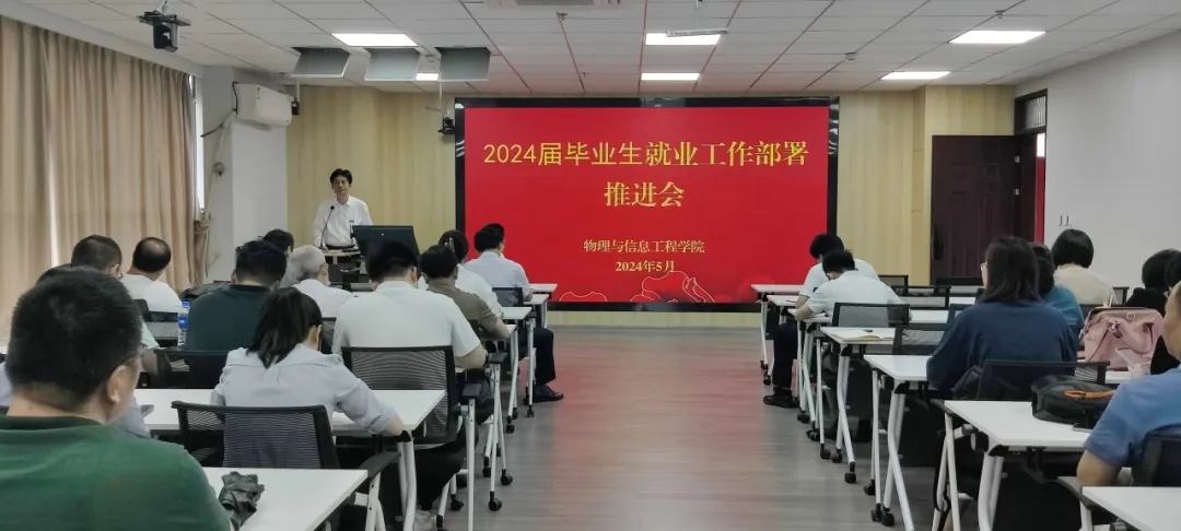 于5月23日在科技楼南809召开2024届毕业生就业工作推进会,学院全体教职员工参加会议,学院党委书记杨红和主持会议。
