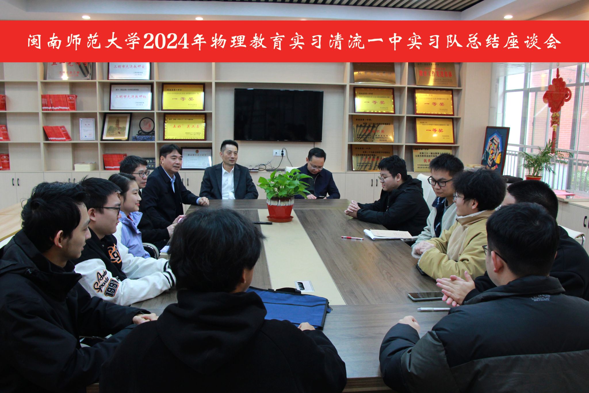 负责本次实习工作的清流一中副校长官汉聪参与了实习总结汇报会,他从三个方面总结回顾了本次实习工作:一是学校重视,各部门全力保障实习工作顺利开展。委派专业能力突出、责任心强的老师实现实习生的双导师机制;二是实习成效显著,师生彼此促进。经过三个多月的实践,实习生在教育教学实践、班主任工作、培优辅差等方面都取得了很大的进步与收获,得到了师生广泛好评,也促进了指导老师治学水平和教育理念的更新;三是校园文化得以传播,实习机制不断优化。实习生在学校感受了教研教学氛围、体会学校办学理念和特色,实习生的成长机制和平台逐渐完善,不断吸引更多优秀同学加入清流一中大家庭打下基础。欢迎有意向的毕业生留下来,一起为清流的中学教育事业添砖加瓦、助梦成长,同时希望同学们回去后也向本专业其他同学宣传本校,清流一中急需物理教师,欢迎同学们前来应聘。对全体实习生的后续发展,官汉聪副校长提出四点建议:一是注重师德师风养成;二是及时总结实习成果;三是注重研读教材、阅读文献;四是借助物理试题加强实战训练。