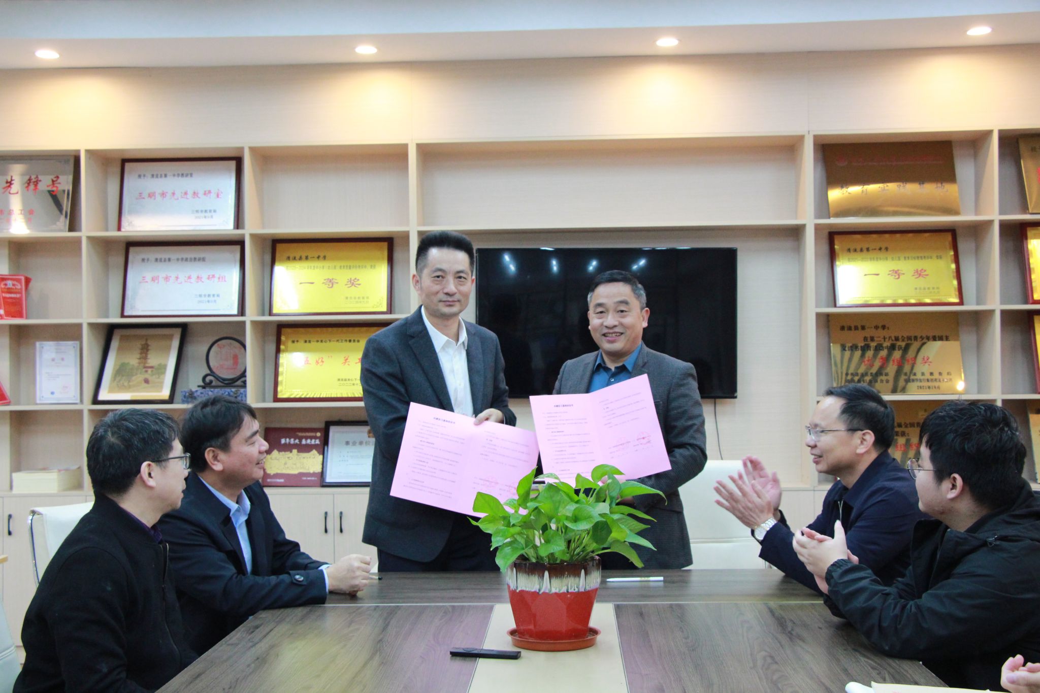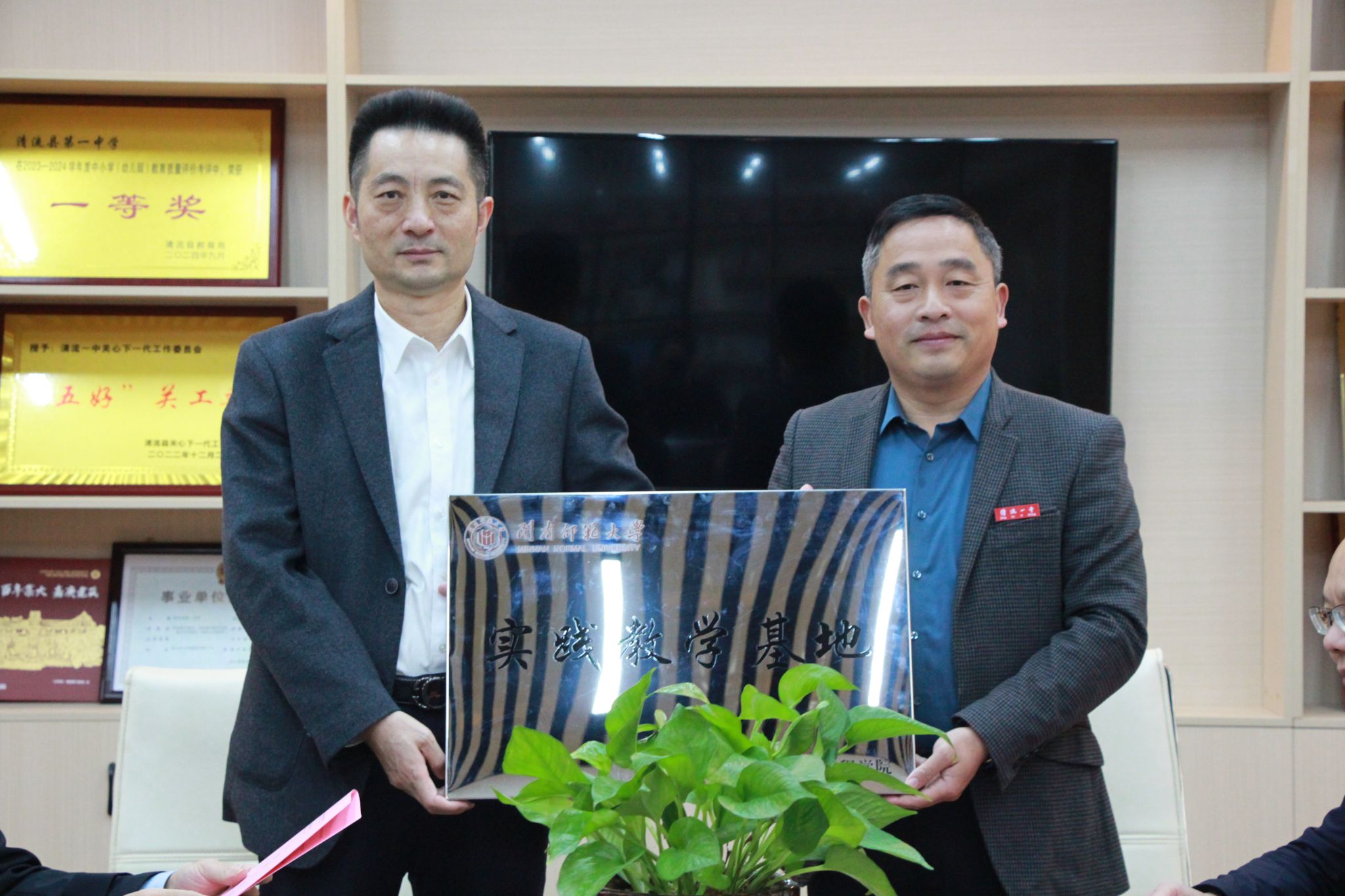 与清流一中共建教育教学实践基地协议,并举行挂牌仪式。