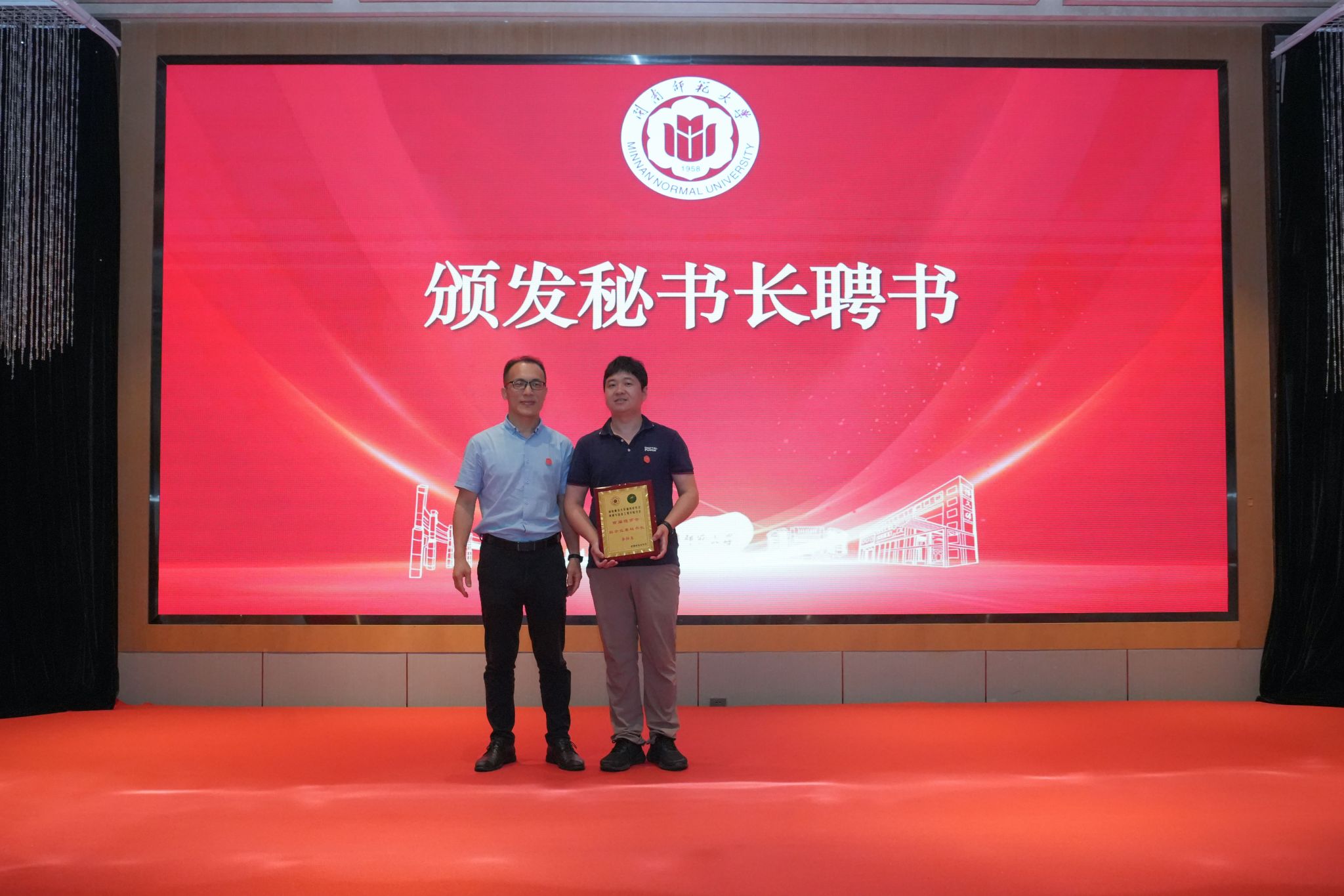 社会合作处处长、校友会会长陈志宏为新当选分会会长颁发聘书