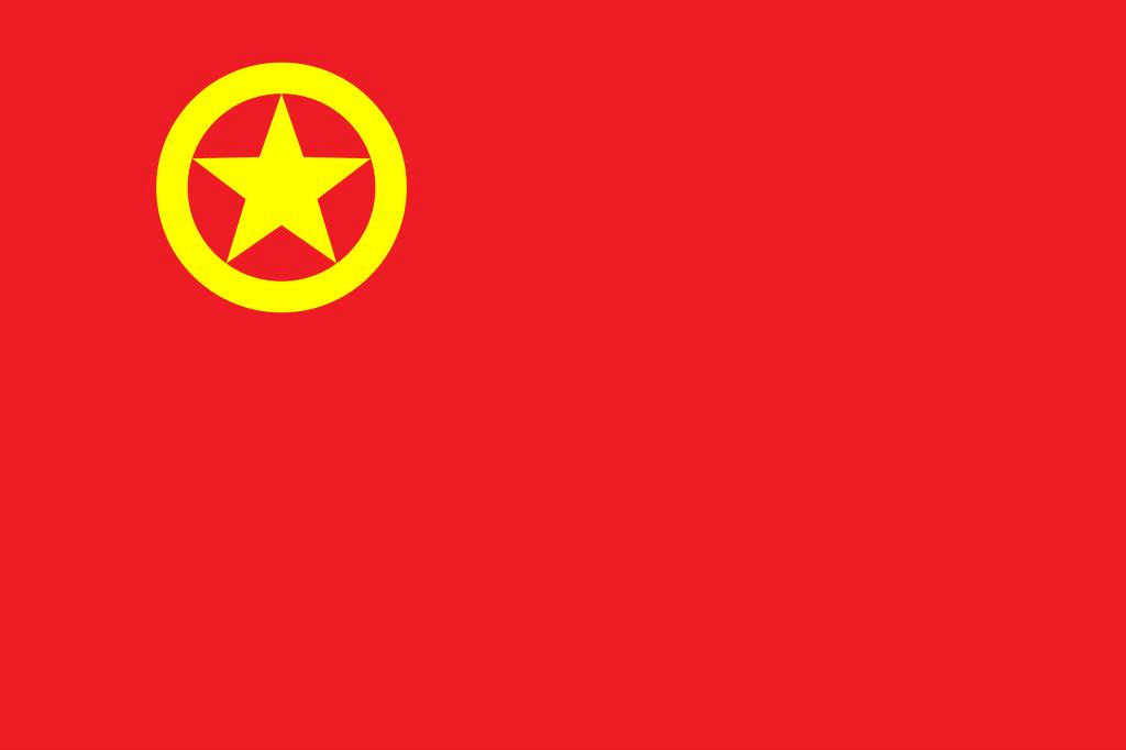 团旗的制作方法是黄圈围着的黄色五角星,缀在旗面左上方,制旗时,先将旗面对分为4个相等的长方形, 将左(它的反面为右)上角长方形上下分为12等份,再以左上角长方形中心点为圆心,3等份及4等份长为半径画两圆周,两圆周之间就是黄色圆圈。再在内圆周上定出5个等距离的点,其中一 点位于圆周正上方。将此5点中各相隔的两点相联成直线,此5直线之外轮廓线就是黄色五角星的外缘。