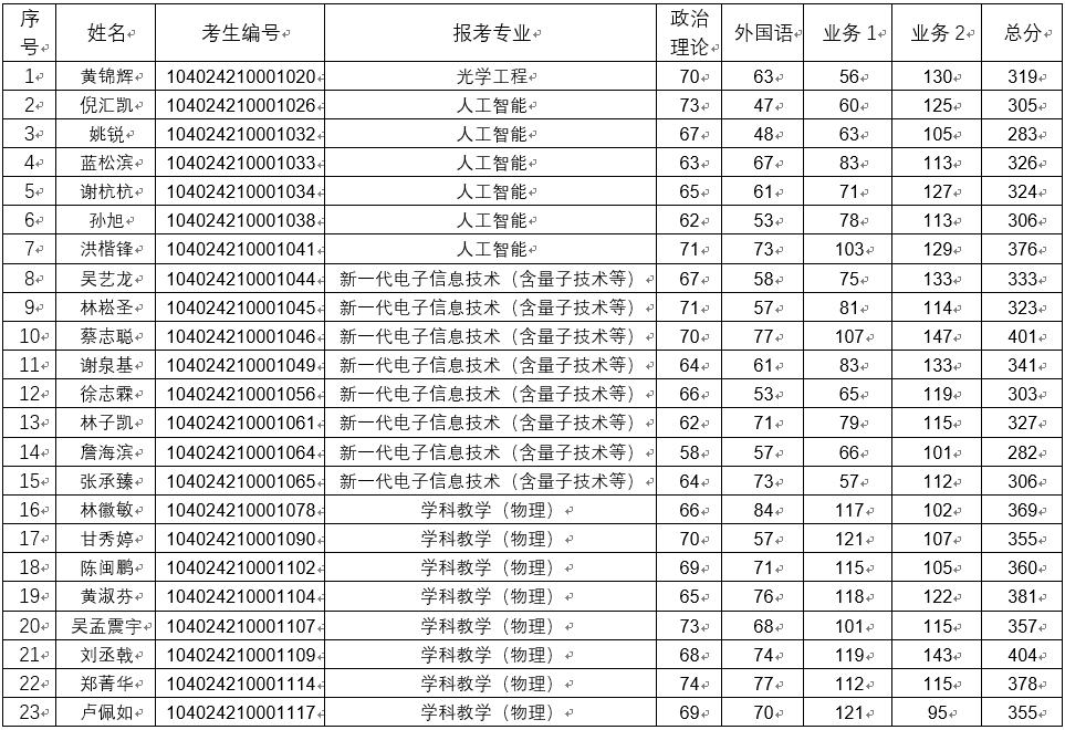 复试名单: