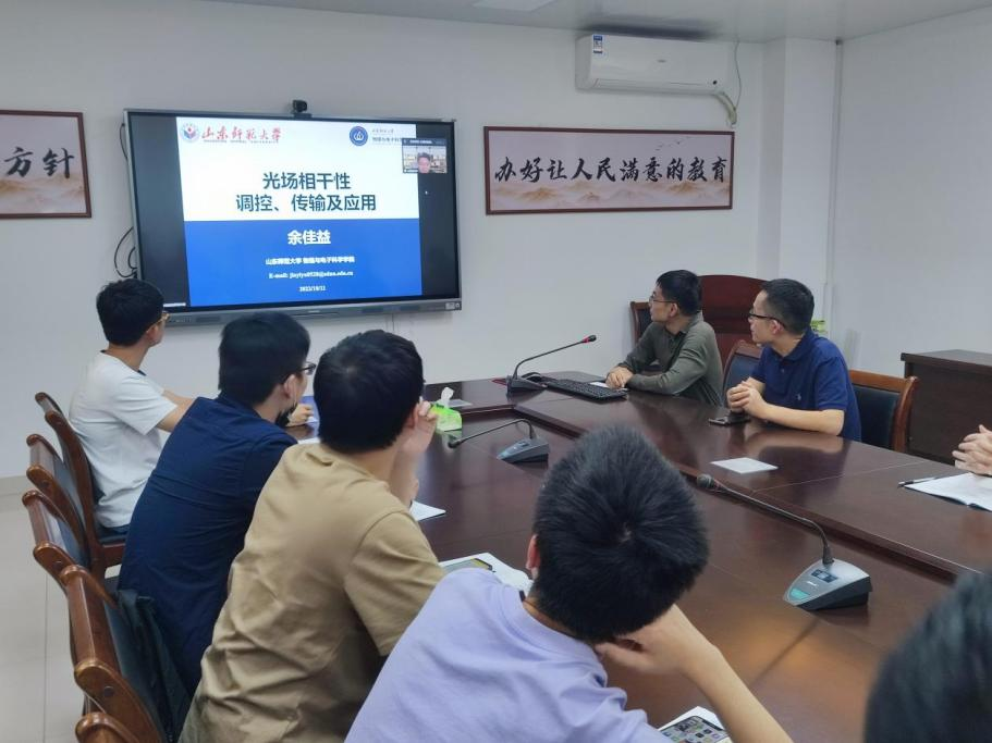 师生开展主题为“光场相干性调控及应用”的学术讲座。讲座于科北907进行,通过线上线下的方式进行交流,报告由院长助理徐星教授和物理系系主任张永涛教授共同主持。