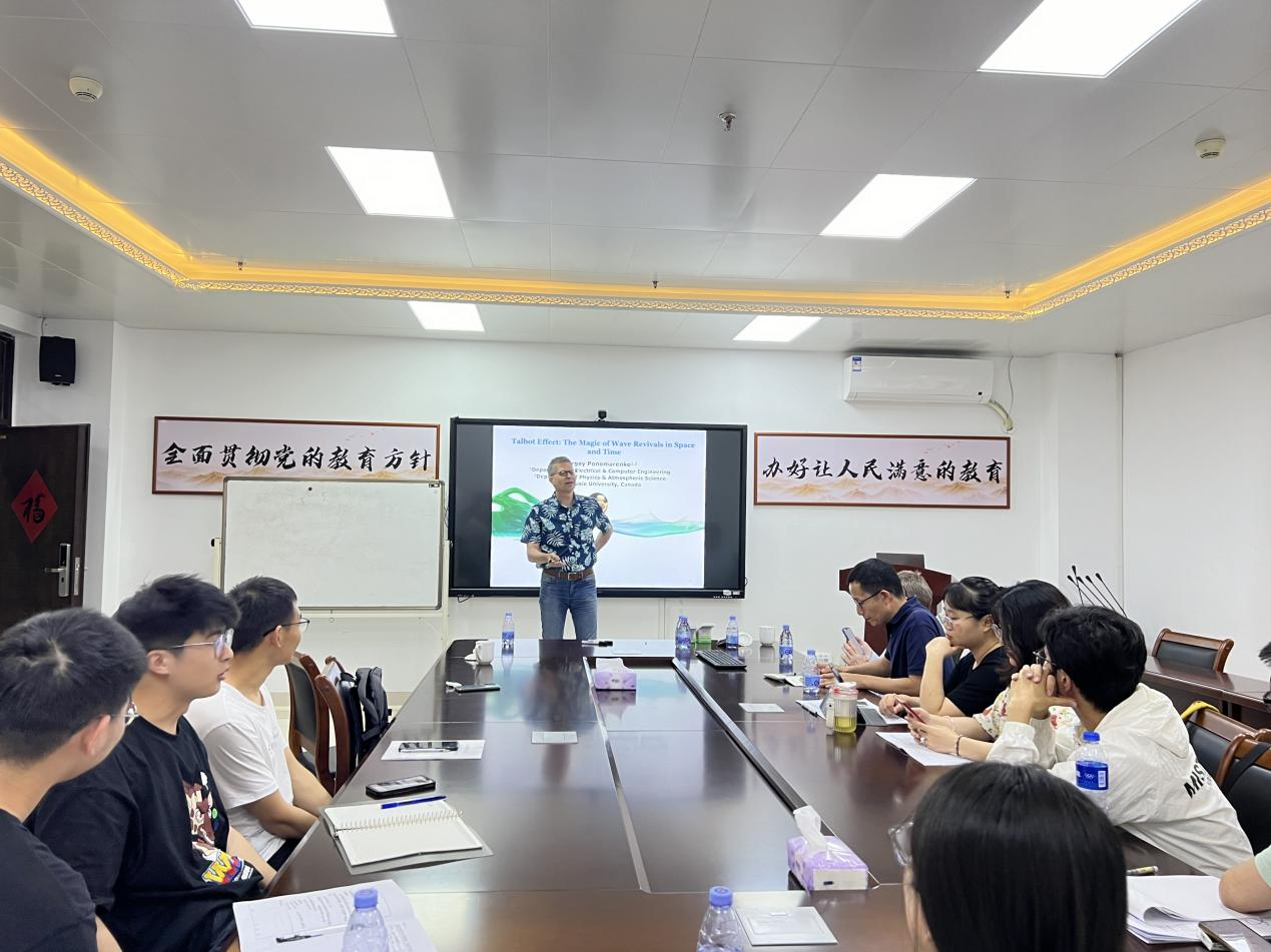 会议下半场,Sergey教授首先介绍了Talbot效应以及时空波包的基本原理,并从理论上详细讲述了时空Talbot效应以及不同时空波包的特性,同时进一步讲解了在实验室中产生时空波包的原理及方法。