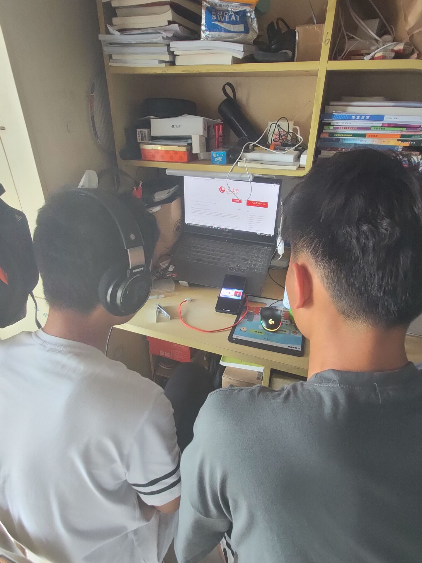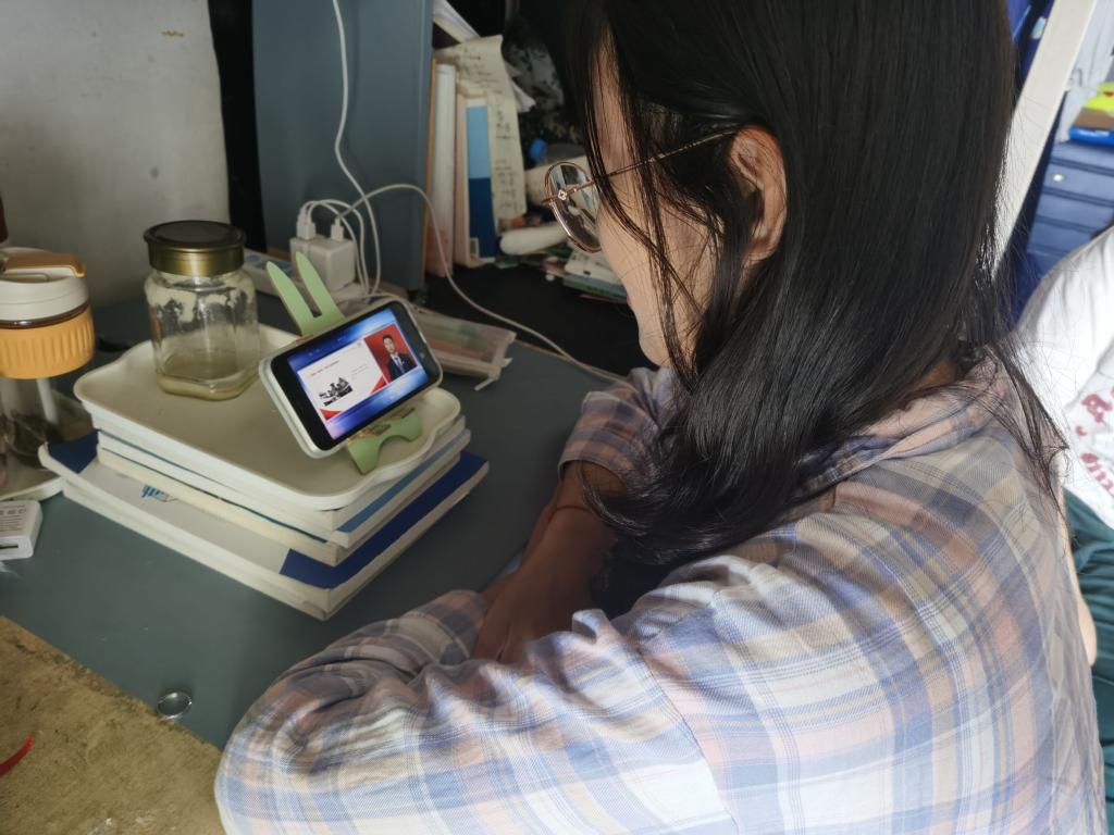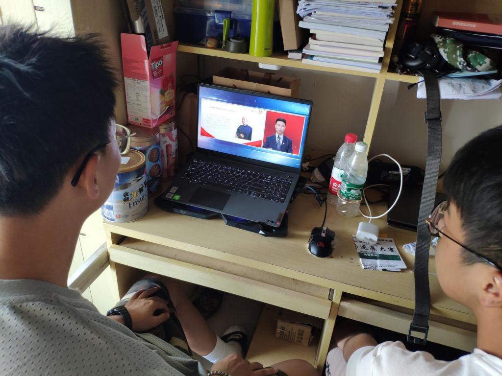 举行期中考试,学生在结束上午的考试后,以宿舍为单位,通过手机,电脑等移动设备进行“四史”第二堂课——“同上新中国史思政大课”的学习。