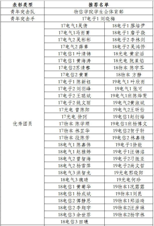 开展了五四评优评先评选推报工作,经个人申报、班级团支部、学生组织推荐,学院团委资格审查、学院学生工作领导小组评审等程序,确定推荐候选人(集体),现进行院内公示: